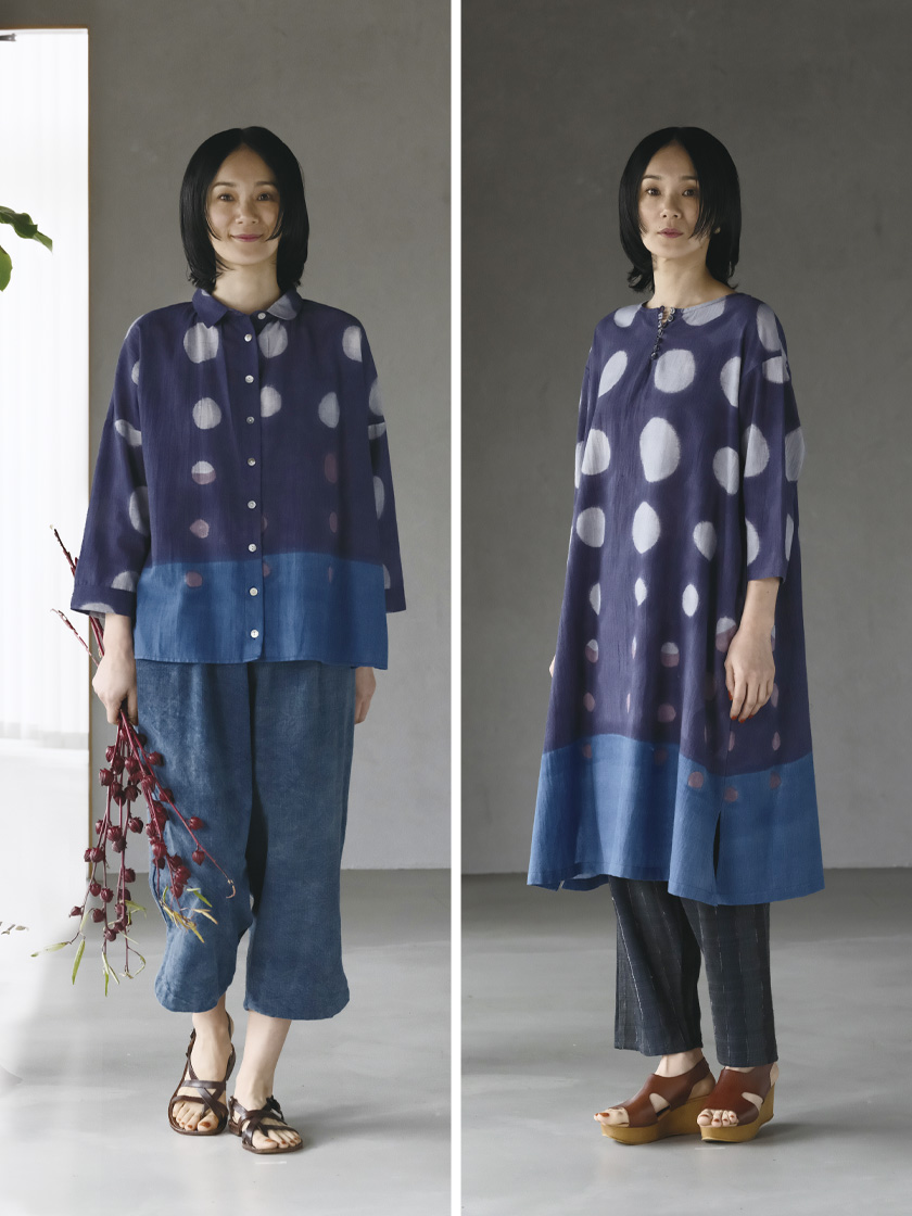 かんかんでは麻、絹、ウール素材にもこの技法を用いています。